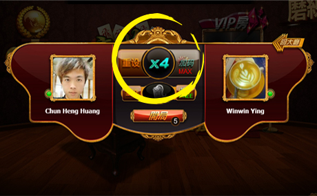 在比赛开始前,玩家们可以选择要用多少倍数的筹码加码 (以上图片的圈里)