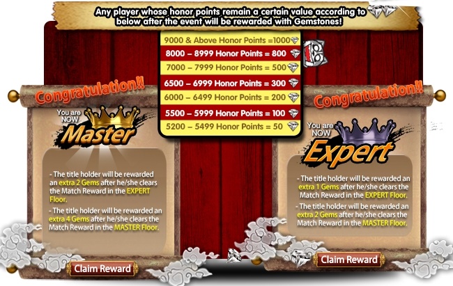 Any player whose Honor Points remains a certain value after the event will be rewarded with gems! (Refer to the table below)